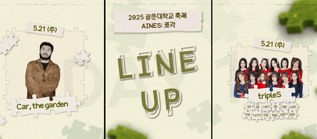 이번 축제는 우리 각자의 색깔이 모여 하나의 큰 그림을 그리는 특별한 순간을 의미하는 '조각'을 주제로 하고 있어요. 다양한 개성과 열정이 하나로 모여 캠퍼스를 가득 채울 이 특별한 축제에서 여러분도 함께 빛나보세요!