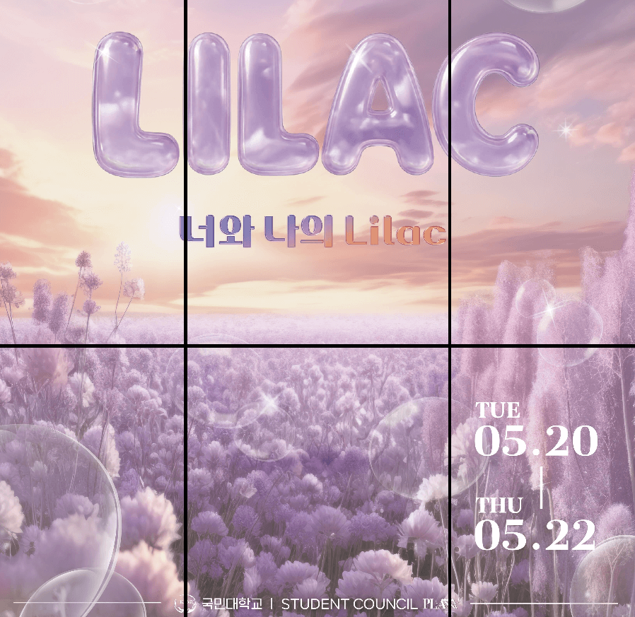 싱그러운 봄바람과 함께 찾아온 2025년 국민대학교 대동제 'LILAC' 소식으로 인사드려요. 올해도 어김없이 캠퍼스를 가득 채울 설렘과 열정이 여러분을 기다리고 있답니다.