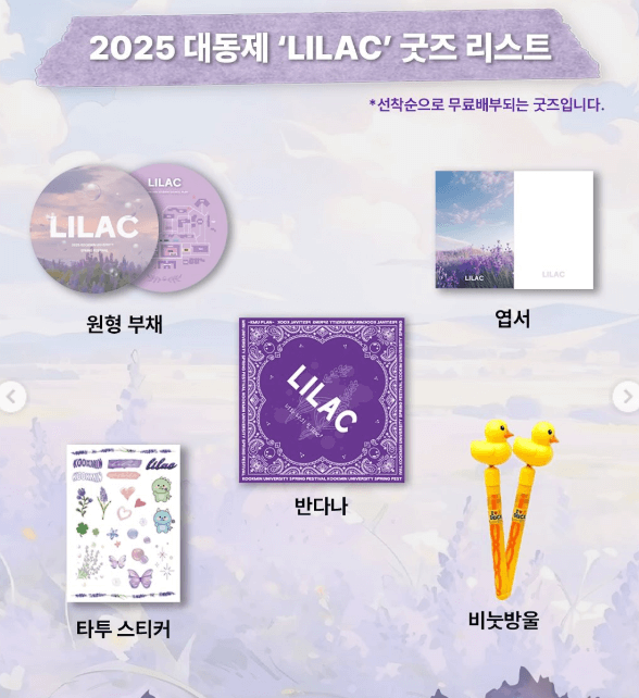 총학생회에서 준비한 'LILAC' 굿즈는 한정 수량으로 제공되니, 서둘러 받아가세요!