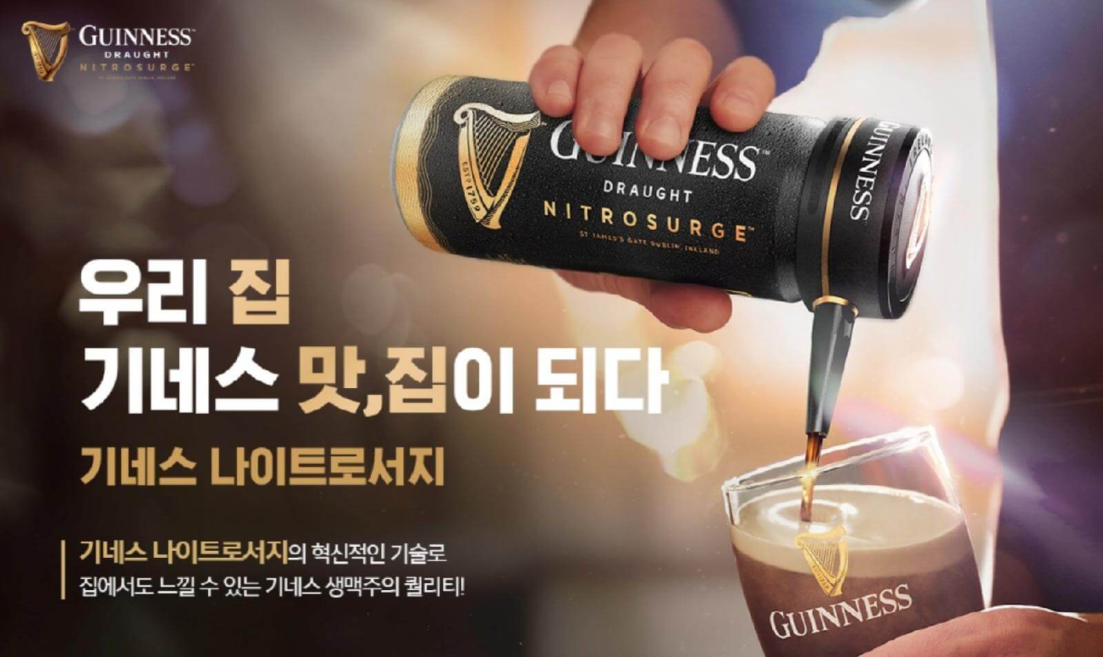기네스 나이트로 서지는 생맥주의 감성과 퀄리티를 집 안으로 옮겨온 새로운 발명품입니다.