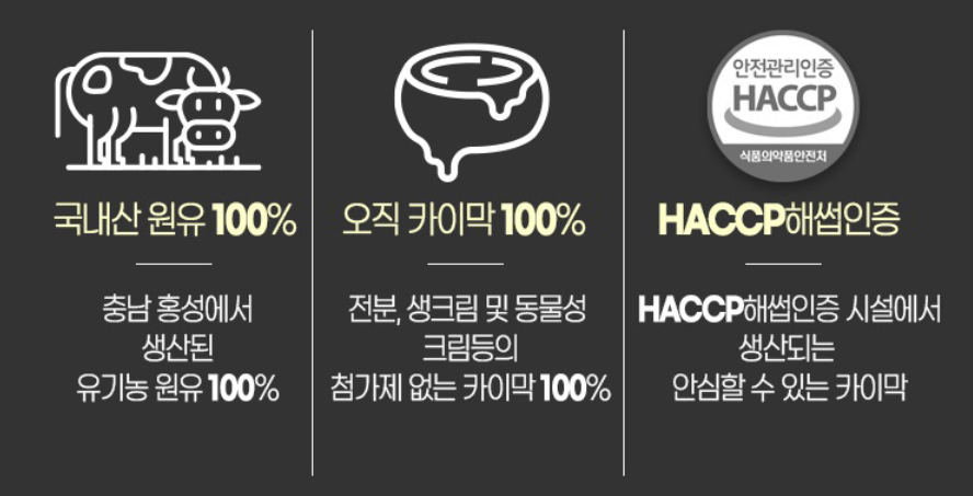 우리나라 젖소의 원유로 튀르키예 현지의 카이막을 재현해내기 위해 1년 이상 연구하여 상품화에 성공했다고 합니다.