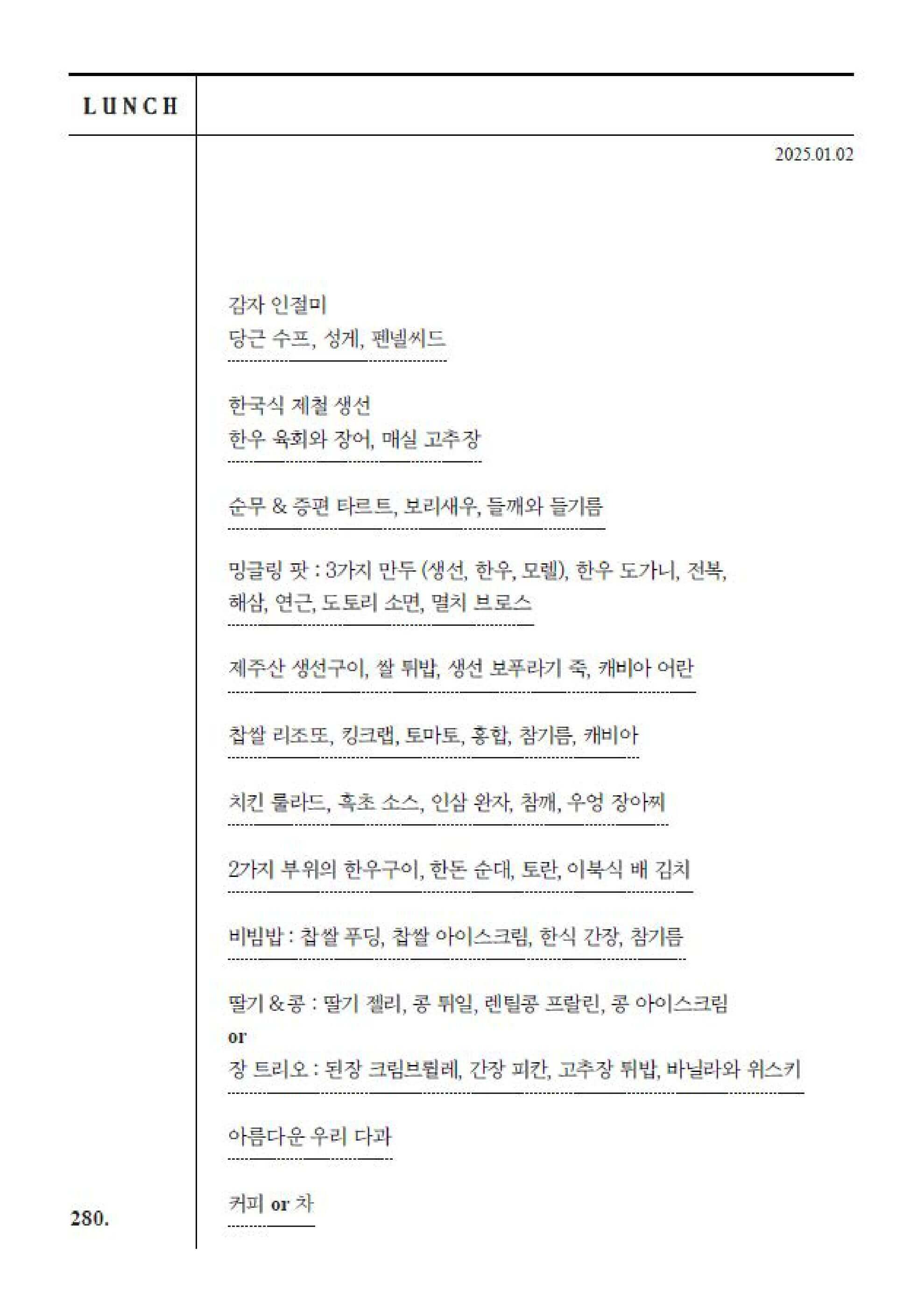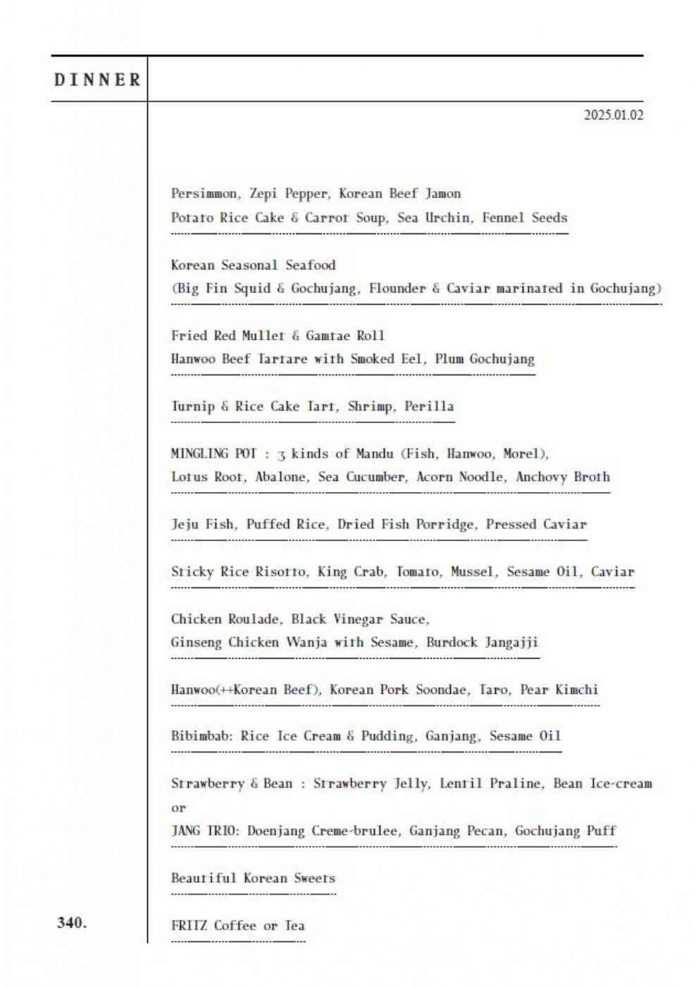 단일 코스로 구성되며, 메뉴는 재료에 따라 매일 조금씩 변동될 수 있어요.