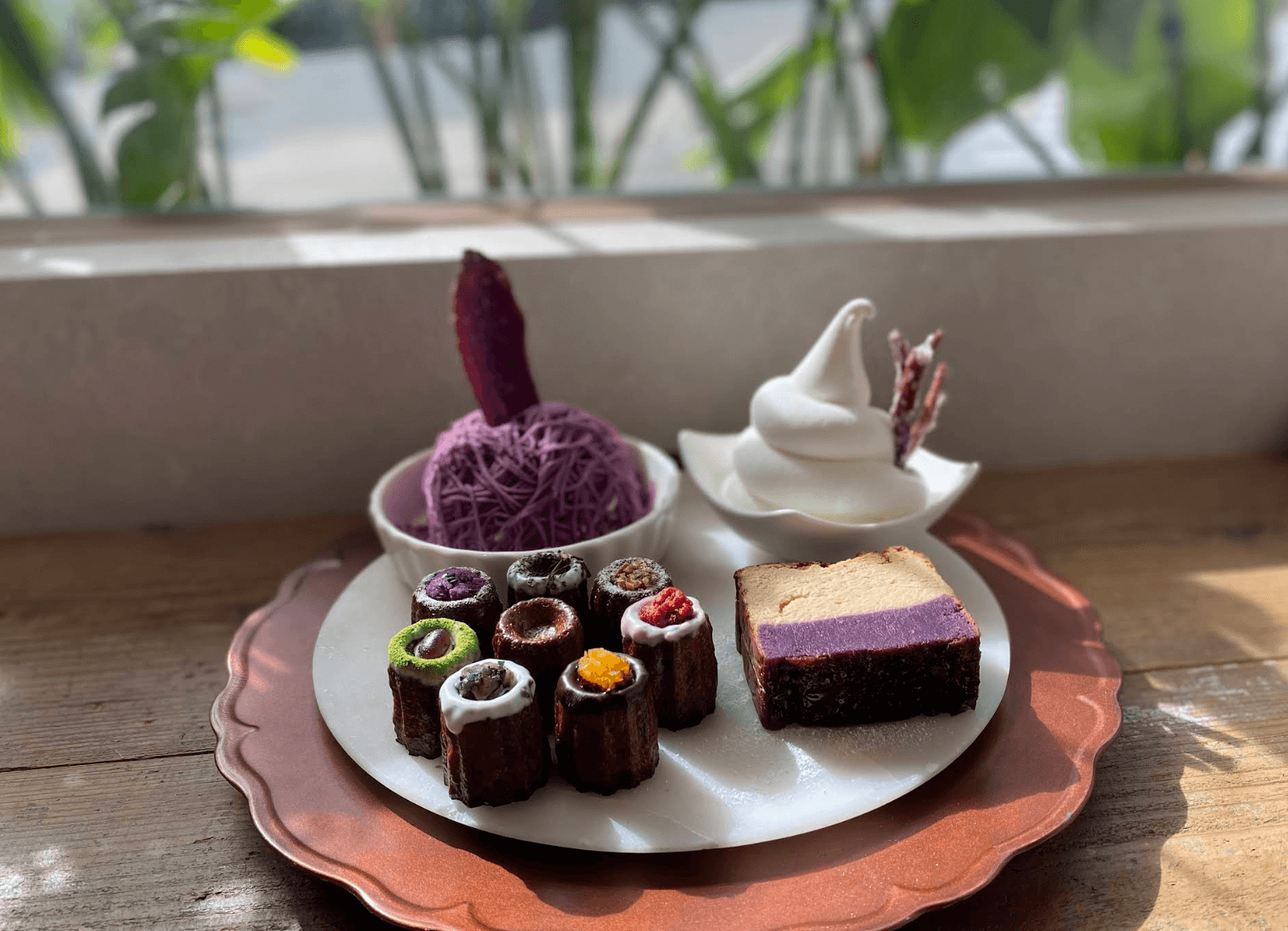 흑당 카눌레자색고구마 빙수가 SNS를 통해 유명해진 카페인데요. 단맛이 강하지 않고 깊은 풍미가 남아요. 작은 공간이지만 포근한 분위기에서 현지의 고급 디저트를 맛볼 수 있어요.