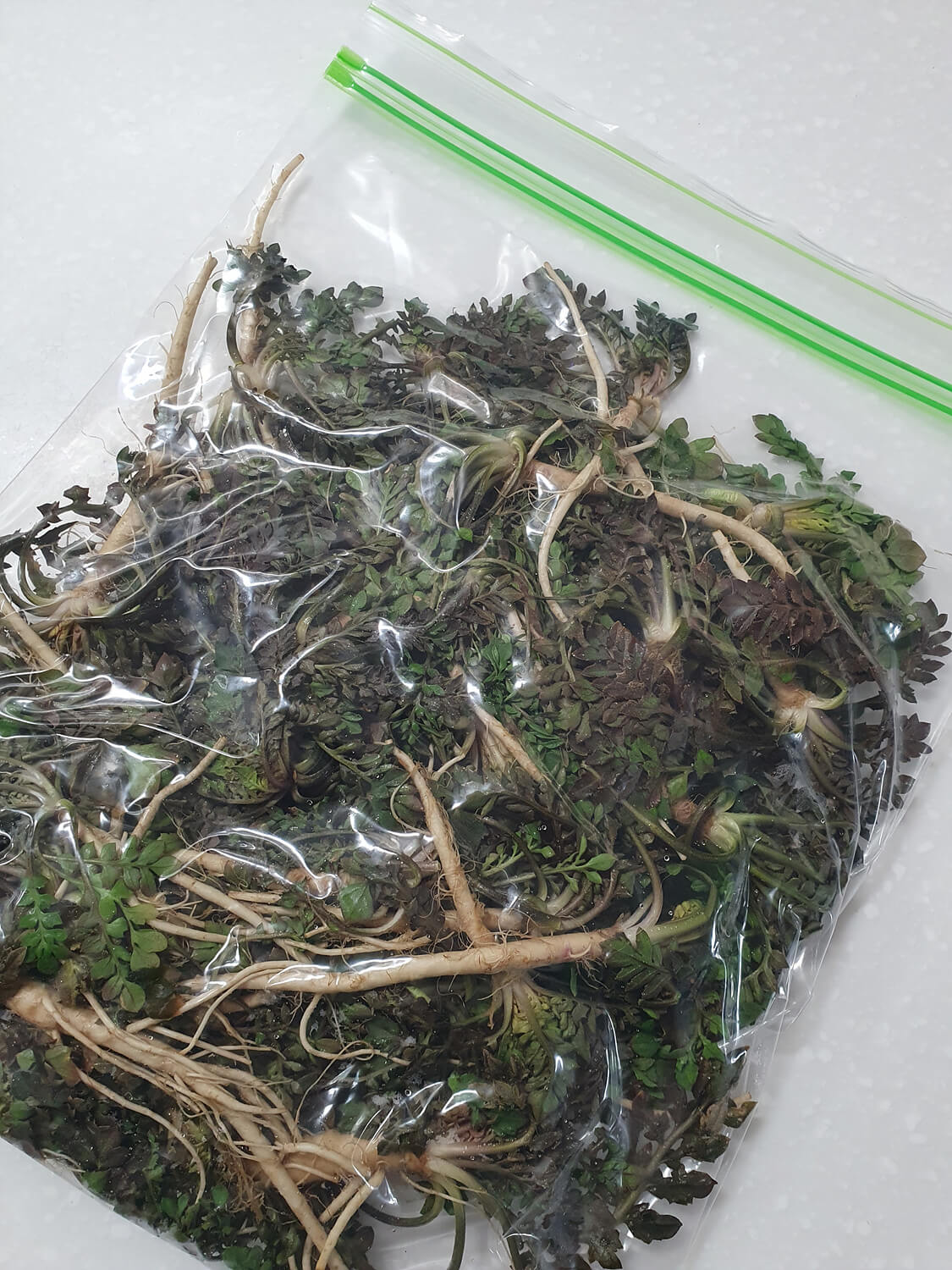 냉이를 데치지 않고 보관하는 방법과 데쳐서 보관하는 방법이에요. 어떤 방법을 선택해도 보관 자체에는 크게 다른 건 없지만 이 포스트에서는 간편하게 할 수 있는 '데치지 않고 보관하는 법'에 대해서 알려드리려 해요.