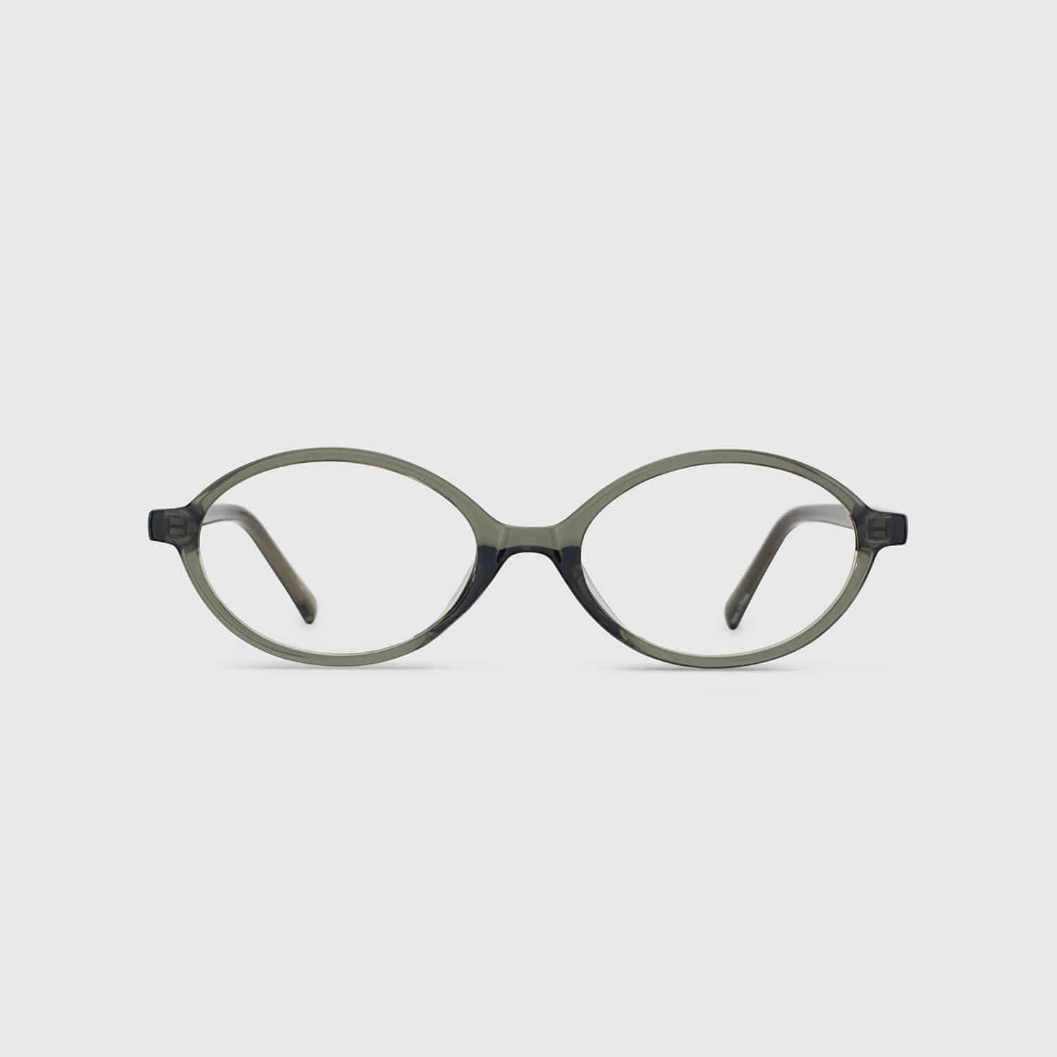 이 카키 컬러의 타원형 안경은 각진 얼굴형이나 긴 얼굴형에 부드러운 곡선을 더해 조화로운 인상을 만들어줘요. 자연스럽고 차분한 분위기를 원하며 웜톤 피부를 가진 남녀 모두에게 잘 어울리는 디자인이에요.