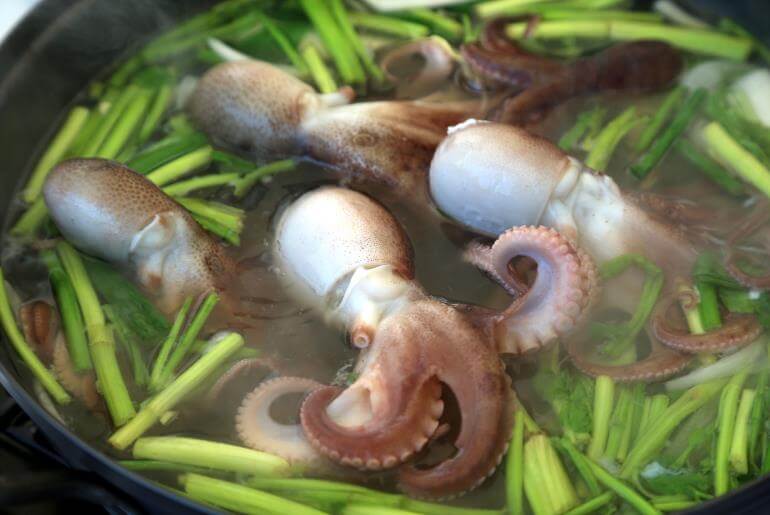 신선한 주꾸미와 야채를 담백한 육수에 살짝 데쳐 먹는 건강식으로, 주꾸미 본연의 맛을 제대로 살리는 요리입니다.