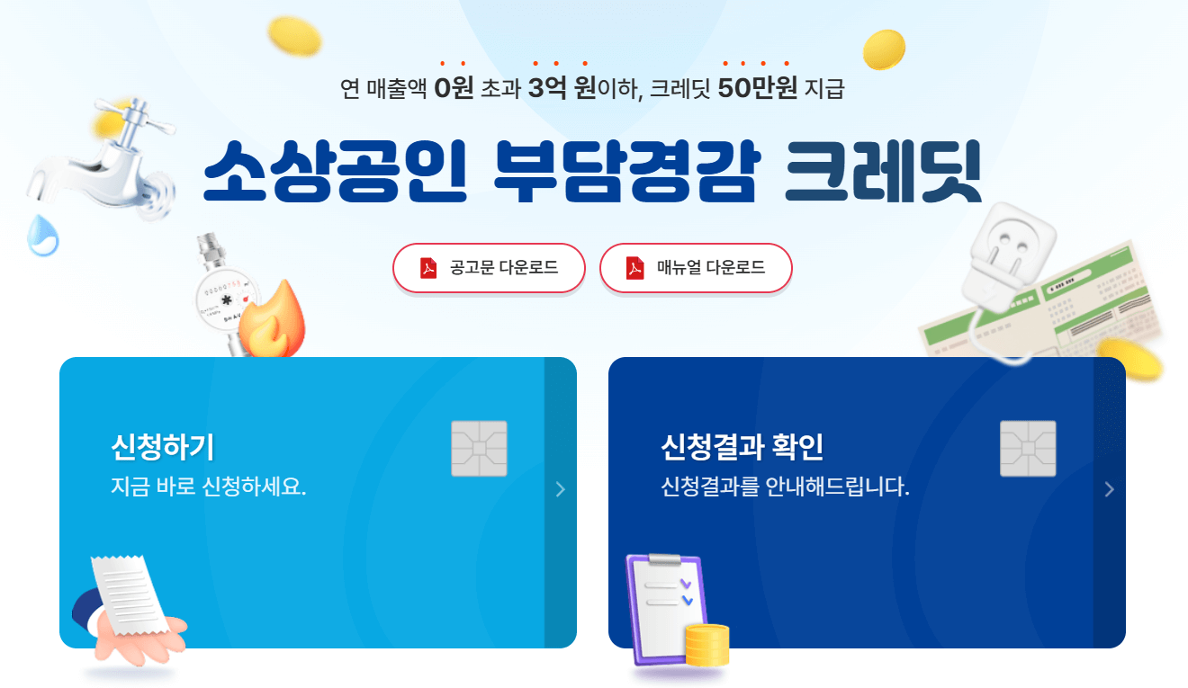 정부가 ‘소상공인 부담경감 크레딧’이라는 이름으로 1인당 50만원 혜택을 디지털 포인트(크레딧)로 지원해주는 사업을 시작했어요.