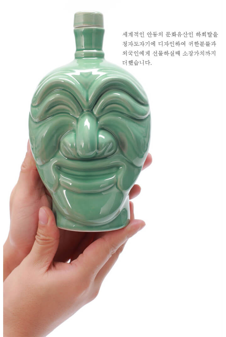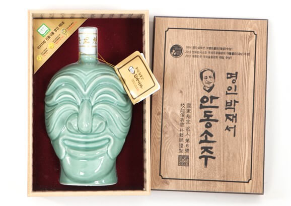 안동소주 45도 원주를 하회탈을 형상화한 병에 담아낸 제품으로 한국적인 멋을 살렸어요.