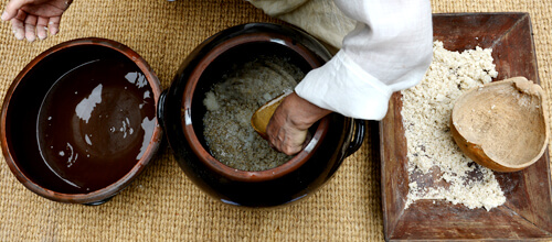 반면, 조옥화 명인의 안동소주는 깨끗한 물과 누룩을 만드는 밀, 고두밥을 만드는 맵쌀을 재료로 35일 간 전술을 만들어 낸 후에 이 전술을 전통방식으로 증류시켜 안동소주를 만들어 내는데요.