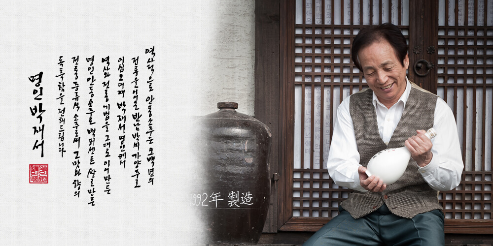 1970년대부터 안동소주의 전통 제조 방식을 연구하며 명맥을 이어온 인물로서 국내 뿐 아니라 해외에서도 높은 평가를 받고 있는 명인 중에 명인입니다.