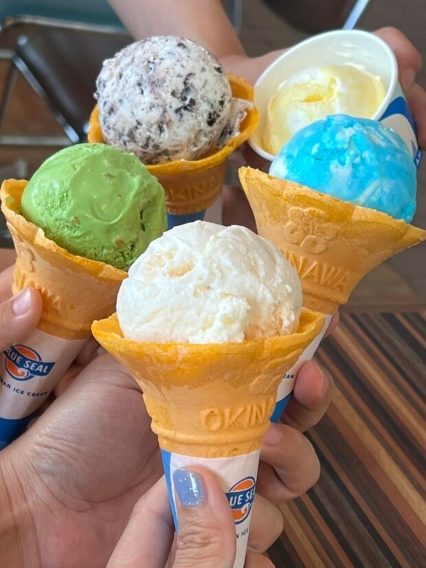 오키나와의 무더위를 식혀줄 최고의 디저트는 바로 블루 씰 아이스크림입니다.
