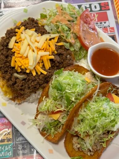 오키나와에서 빼놓을 수 없는 로컬 퓨전 음식이 바로 타코라이스입니다.