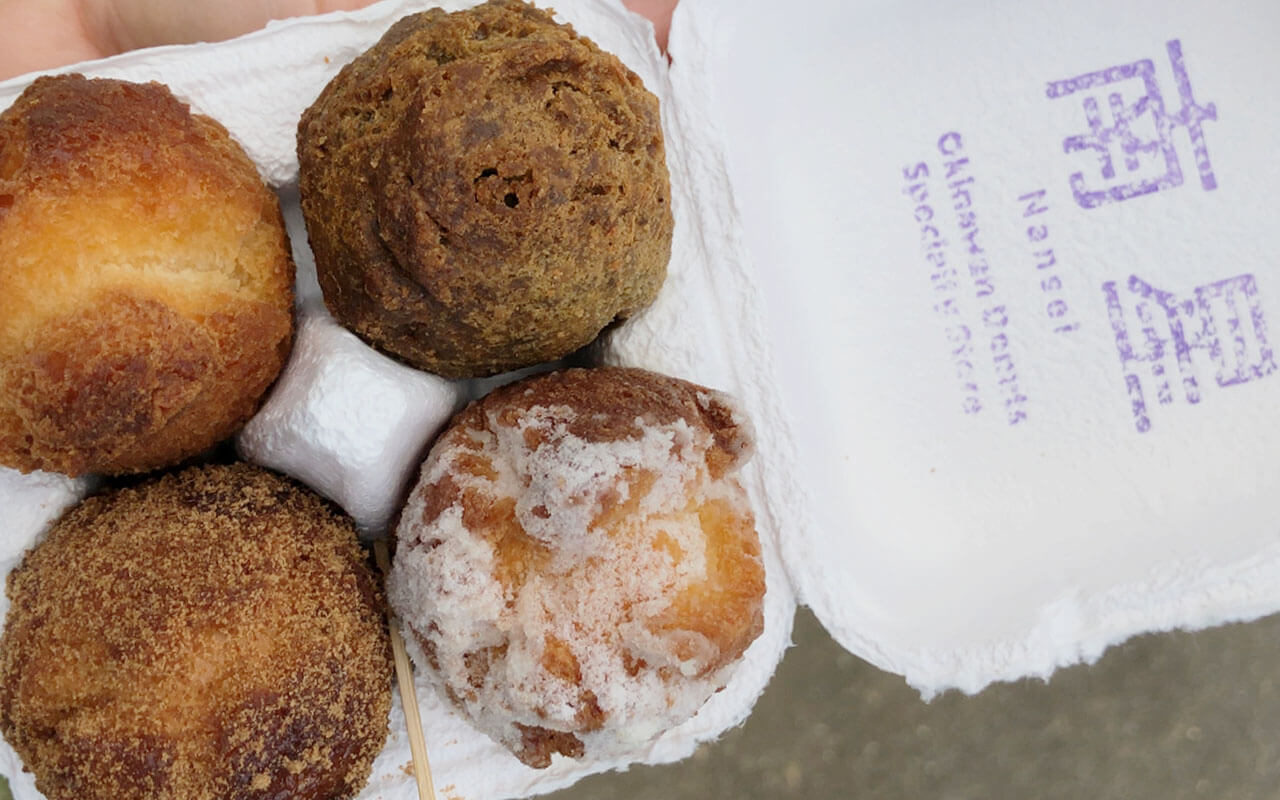 겉은 바삭한 반면 속은 촉촉한 느낌으로, 단맛이 나지만 과하게 달지 않아 질리지 않고 손이 계속 가는 간식이에요. 기본 맛 외에 고구마, 파인애플 등 다양한 재료를 옵션으로 선택할 수 있어요. 들고 다니기도 편해 여행 중에 간식으로도 제격입니다!