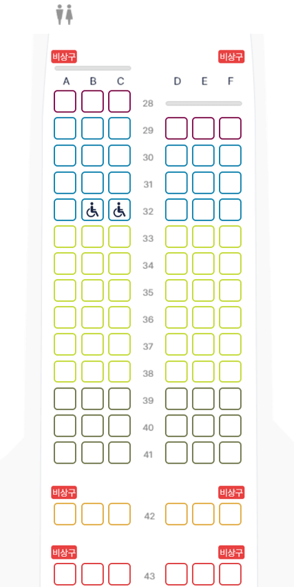 - 날개 앞쪽 좌석: 28열에서 33열 까지는 빠르게 하기 하는데 도움이 됩니다.