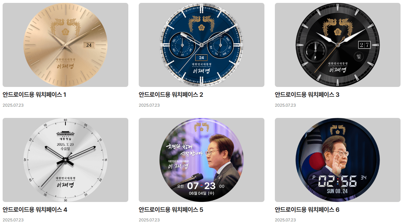 이 워치페이스는 대한민국 대통령실 공식 홈페이지( https://www.president.go.kr )에서 배포되고 있어요.