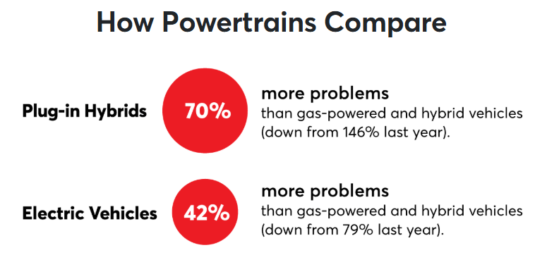 - 내연기관 차량보다 42% 더 많은 문제가 발생했지만 점점 개선되는 추세에요