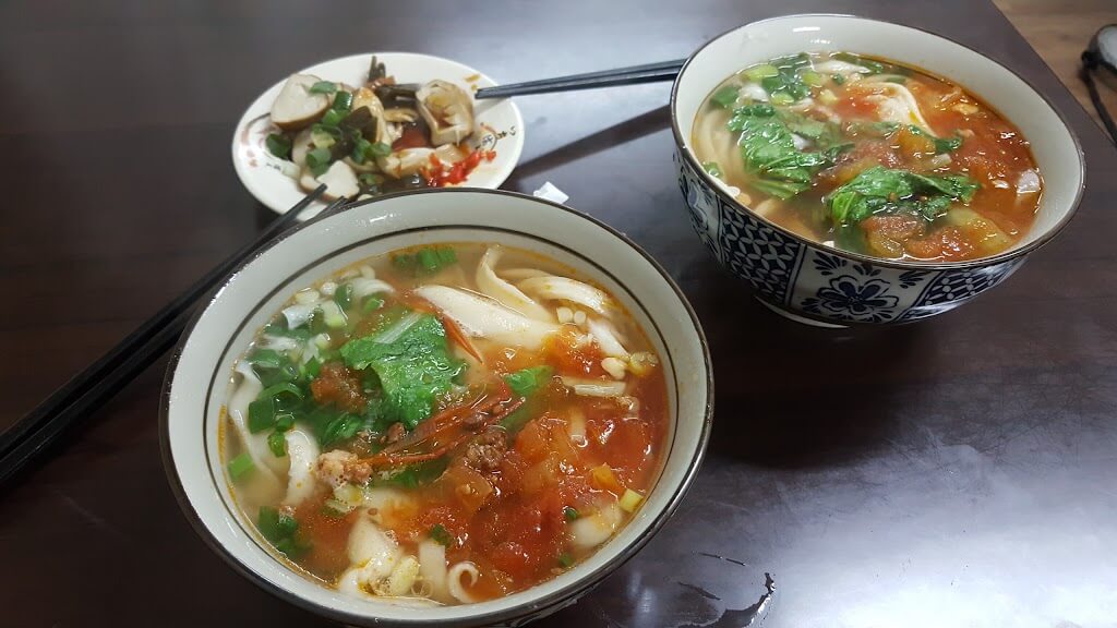 가게 입구에서 도삭 하는 모습을 볼 수 있어 흥미로운 구경거리가 있구요. 도삭면으로 만든 토마토 우육면, 대만식 자장면등을 맛보기에 좋아요. 굵기가 일정하지 않은 면이라 식감도 맛도 재미있습니다.