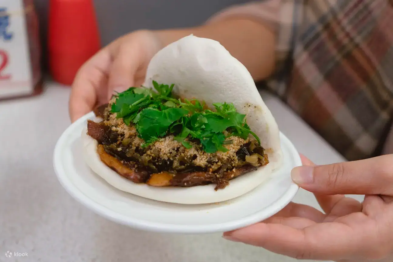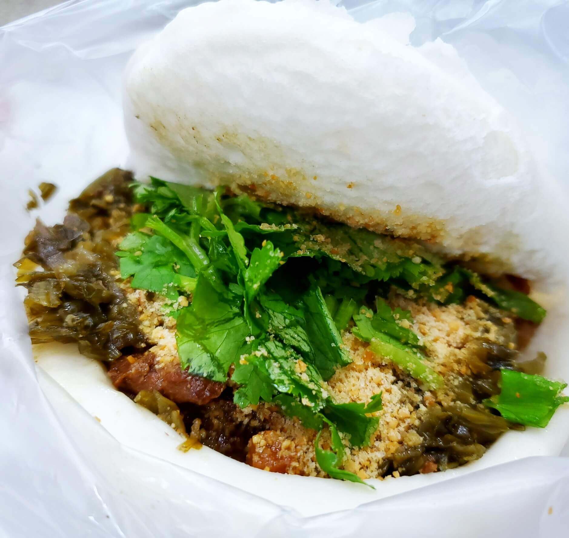 찐빵 안에 다진 양념 돼지고기와 땅콩가루, 야채절임 등이 들어간 대만식 전통 햄버거같은 느낌이랄까. 고수 싫어하시는 분은 미리 빼달라고 하시면 됩니다.