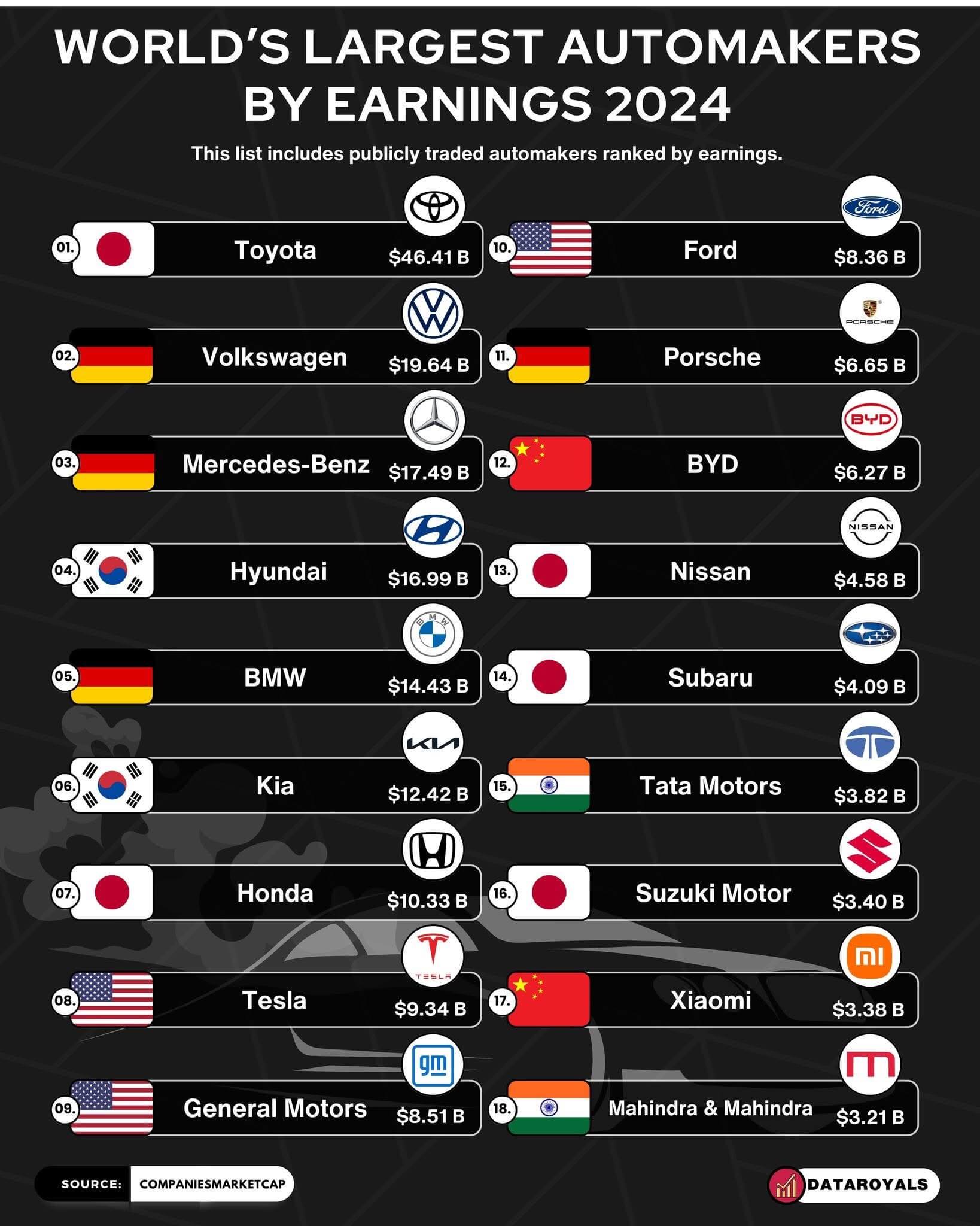 🌍 2025년 세계 자동차 브랜드 순위 (수익 기준) 🚗