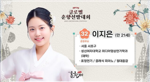 춘향 선의 영예는 성신여자대학교 미디어영상연기학과에 재학 중인 이지은 양(만 21세)에게 돌아갔어요.