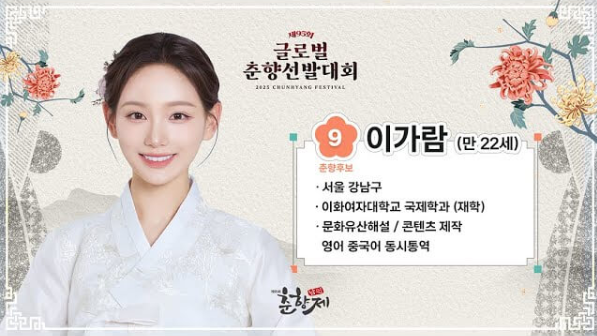 춘향 숙은 이화여자대학교 국제학과에 재학 중인 만 22세 이가람 양에게 돌아갔어요.