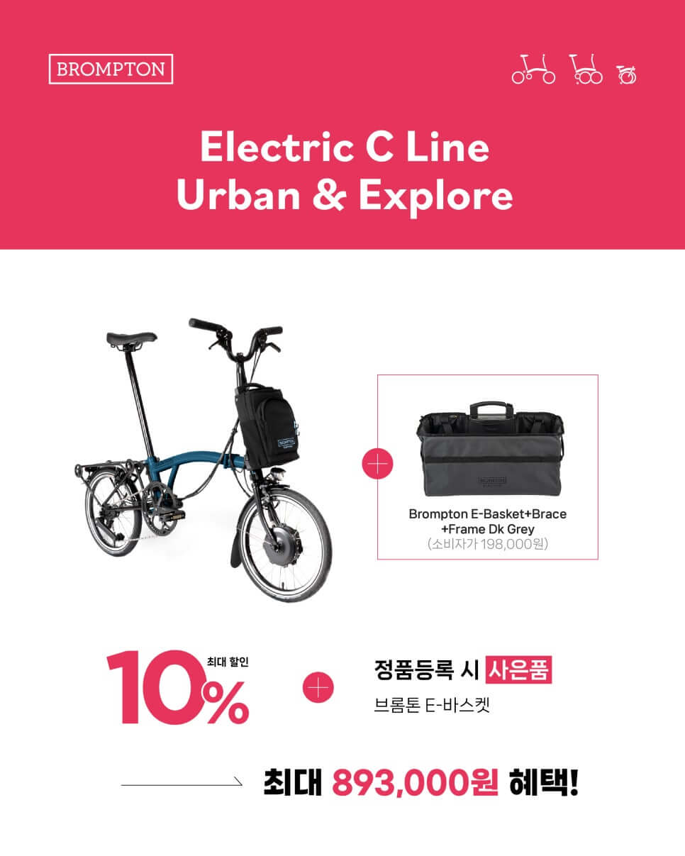 C라인 일렉트릭은 Urban 모델과 Explore 모델 구입시 10% 할인과 198,000원의 정품 액세사리 사은품 혜택이 있습니다.