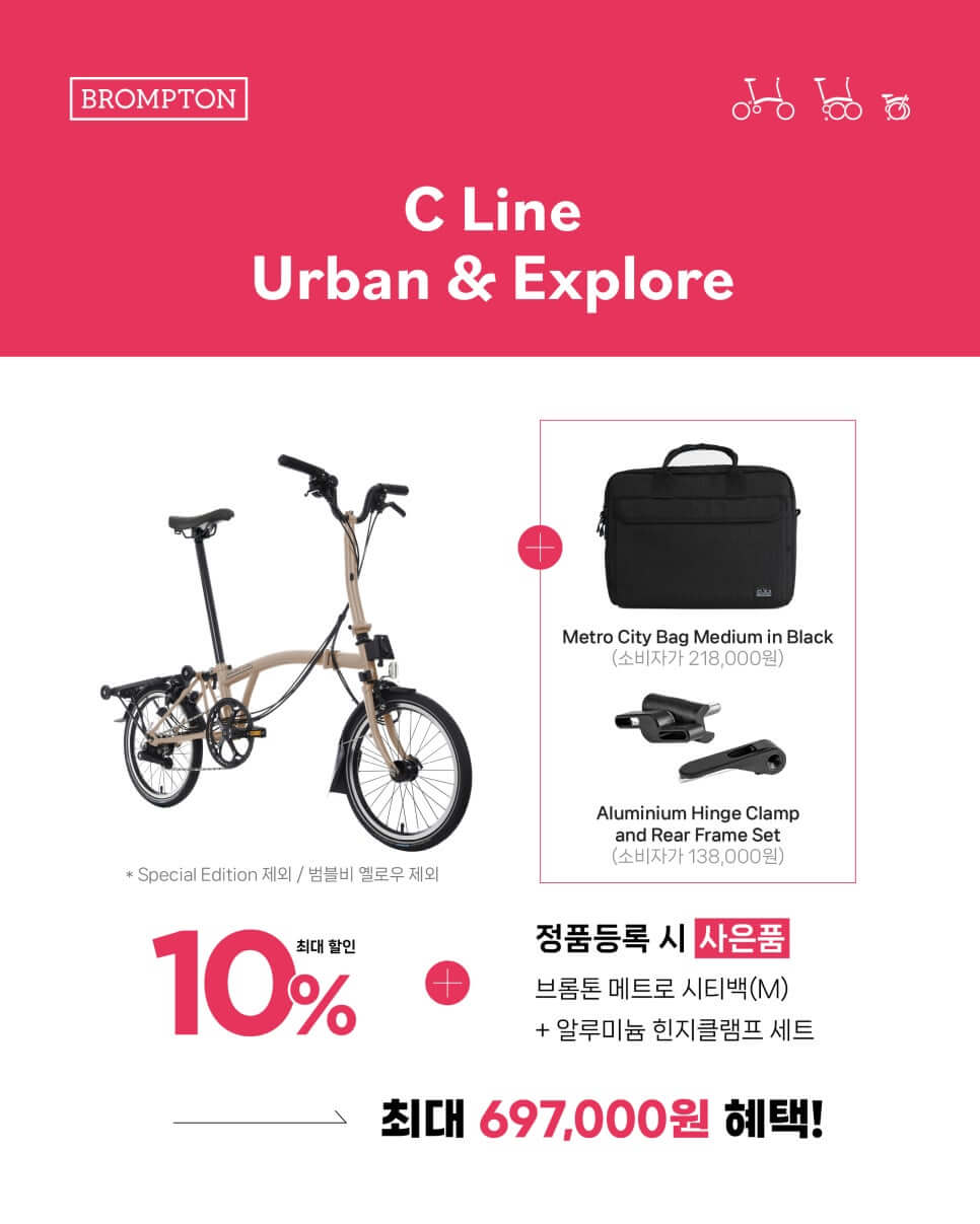 한정 기간 동안만 진행되는 2025년 브롬톤 프로모션! 할인과 정품등록 혜택을 놓치지 않으려면, 기간 내 빠르게 참여하세요! ⏳