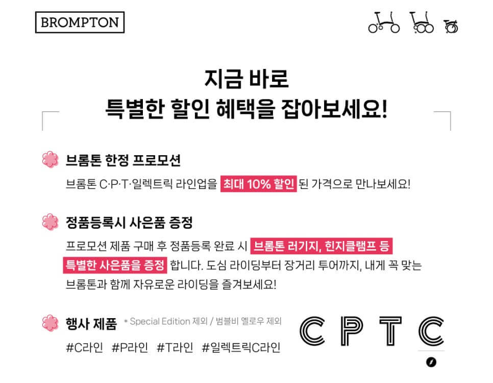 - 🚲 브롬톤 할인 대상 모델 구입시 10% 할인