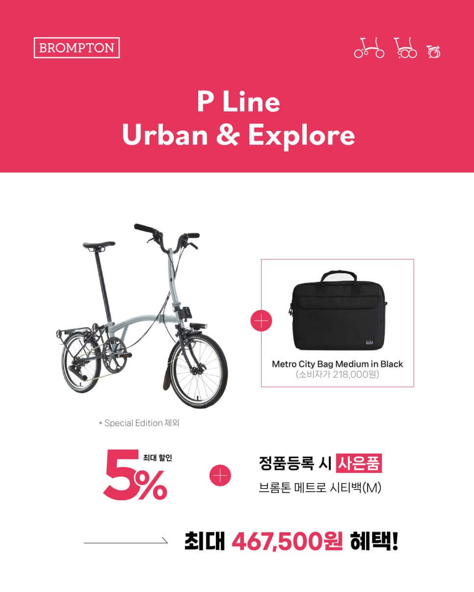 P라인은 Urban 모델과 Explore 모델 구입시 5% 할인과 218,000원의 정품 액세사리 사은품 혜택이 있습니다.