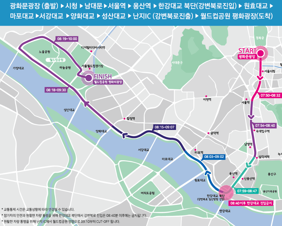광화문 광장에서 출발해 강변북로를 따라 월드컵공원 평화광장까지 약 21km를 달리는 메인 이벤트예요. 교통통제가 이루어지기 때문에 안전하게 라이딩을 즐기실 수 있어요.