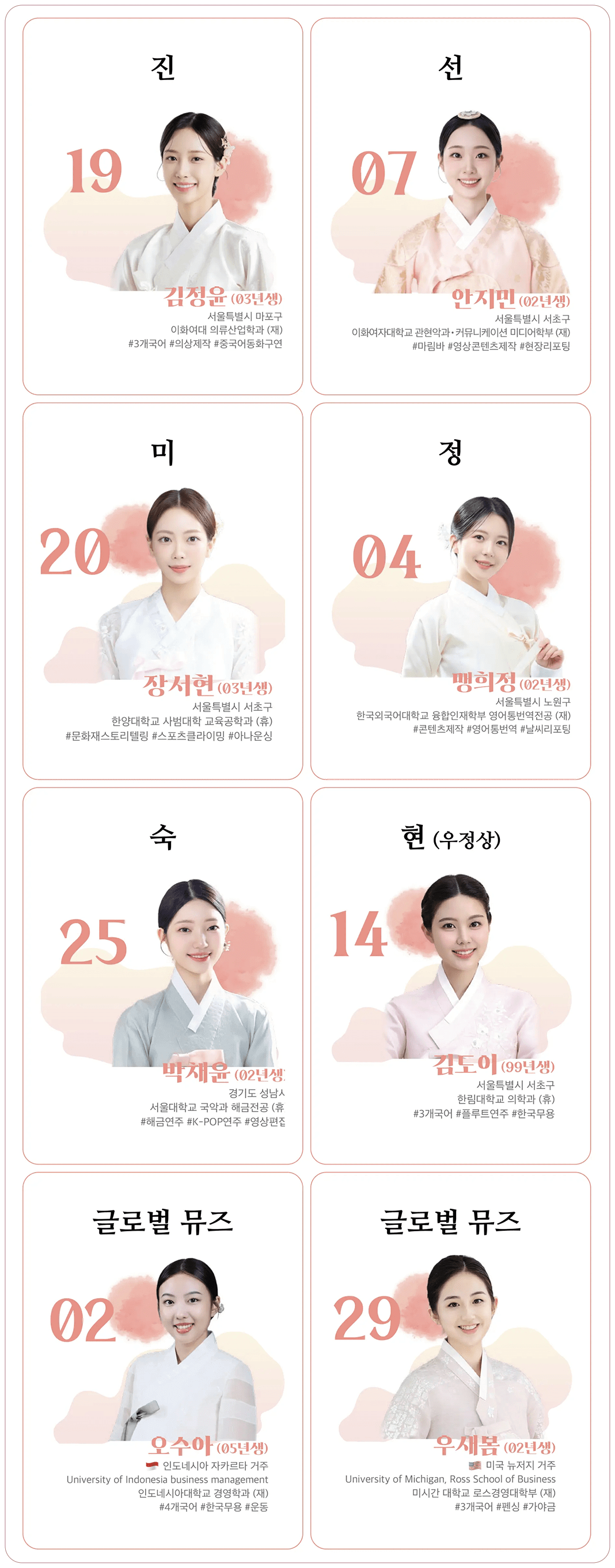 이 외에도 기상캐스터, 인플루언서 등 다양한 분야에서 활동하고 있는 춘향선발대회 출신들이 있는데요. 아래 링크에서 확인하실 수 있습니다.