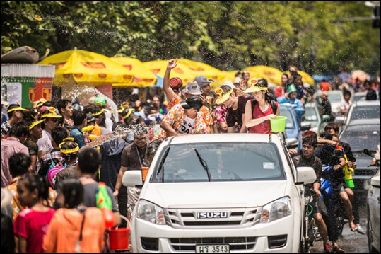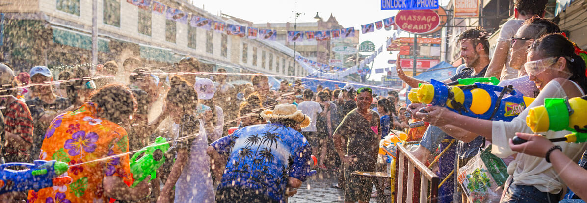 이 축제는 태국의 전통적인 새해 맞이 행사의 하나로, 거리에 나서면 누구든 물세례를 피할 수 없는 신나는 물총 싸움이 펼쳐집니다!