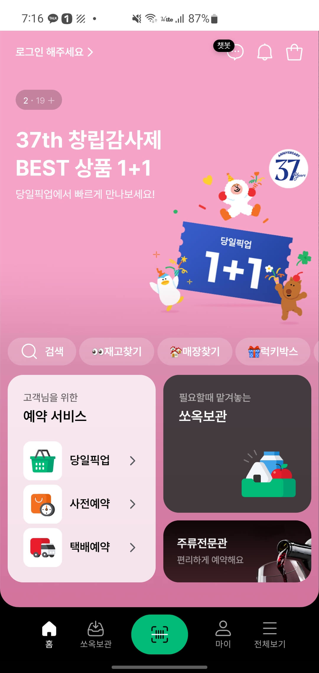 세븐일레븐 앱은 아래 공식 마켓 링크에서 다운로드 할 수 있습니다.